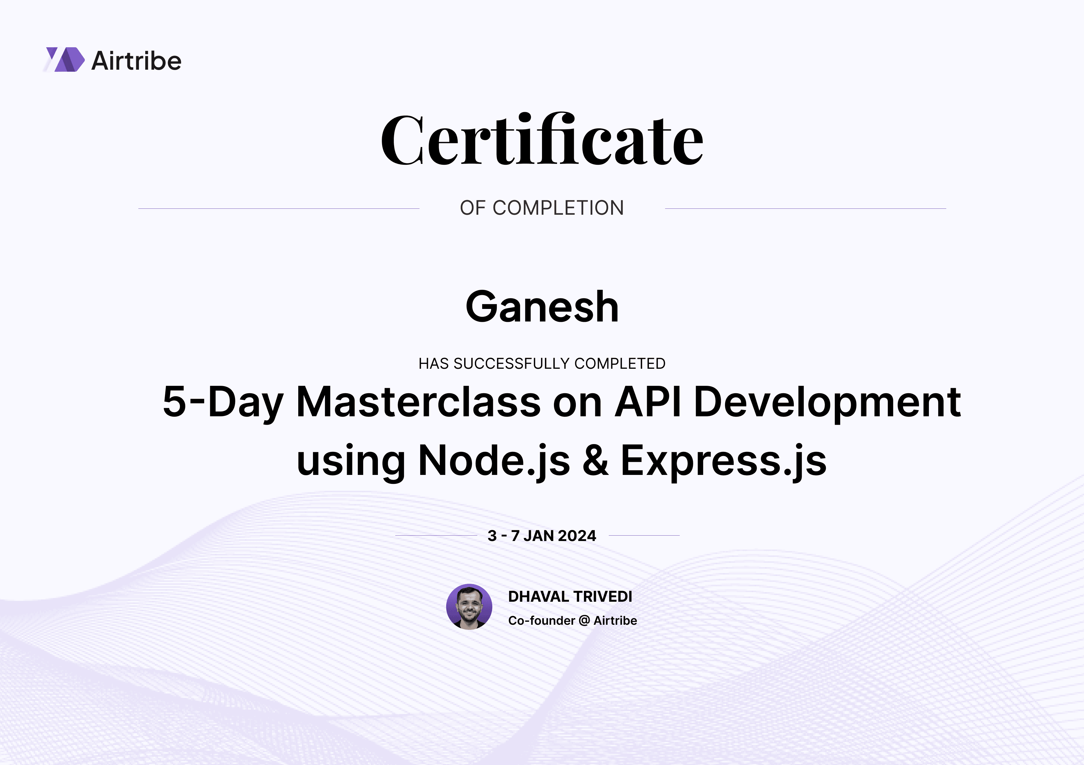 I had the pleasure of attending Dhaval Trivedi's workshop on API Development using Node.js & Express.js. Dhaval's clear expertise and engaging teaching style made it an exceptional learning experience. I highly recommend this workshop to anyone looking to gain practical skills in API development
